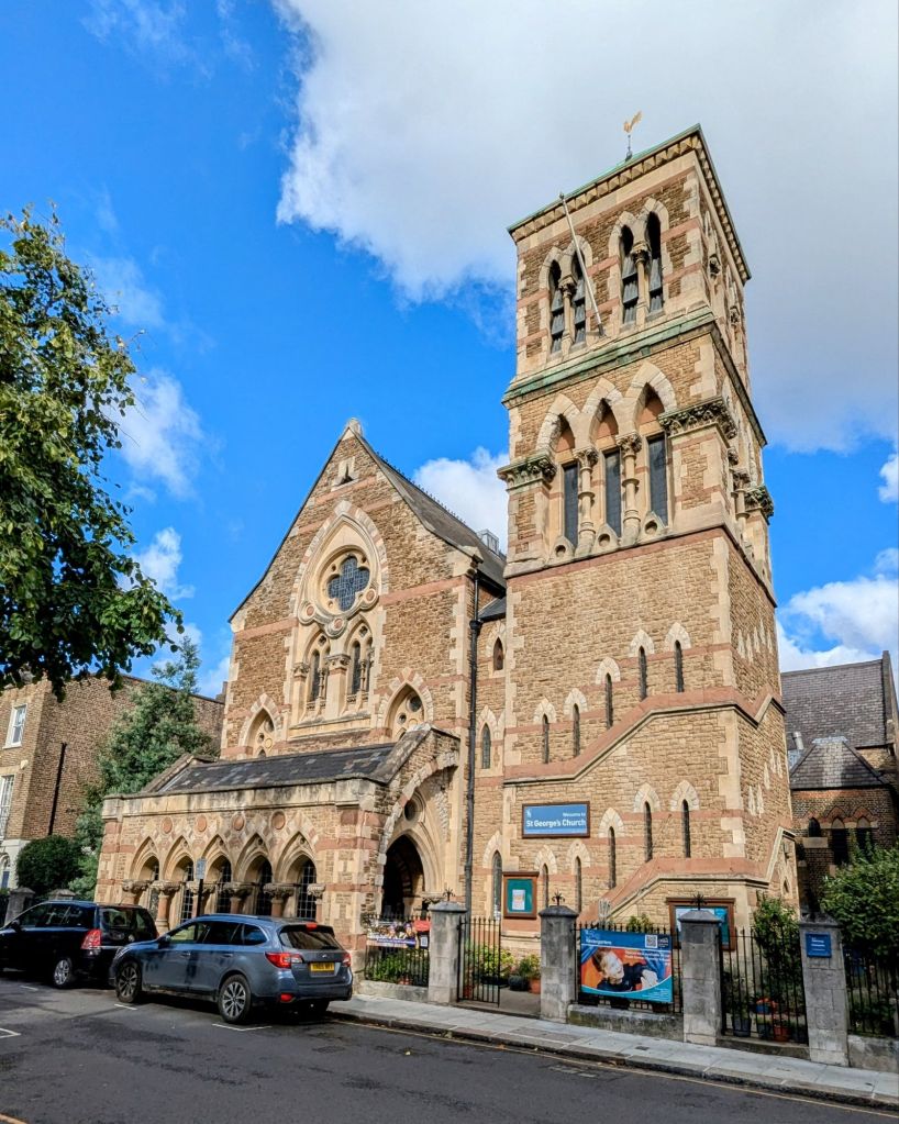 Unser nächstes Ziel ist der Holland Park. Auf dem Weg zu diesem haben wir uns für die ruhigen Gassen von Notting Hill entschieden. Interessant, in dieser Kirche gibt es einen Kindergarten und wir sind uns nicht sicher, ob die ganze Kirche nicht ein Kindergarten ist. Das wäre ja ziemlich witzig.