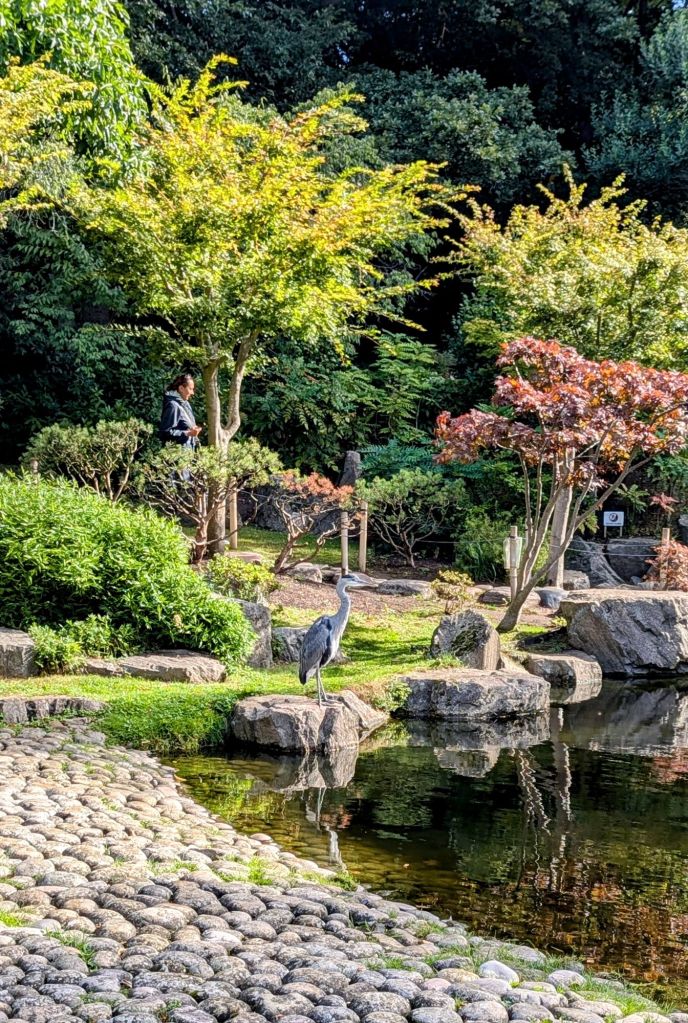 In dem Park gibt es auch einen schönen kleinen japanischen Garten, den Kyoto Garten. Ich habe mich gerade gewundert, warum es hier zwei Reiher gibt, aber einer von den beiden verteidigte gerade sein Revier. Der Garten ist wirklich klein, sieht aber sehr schick aus. Hat sich gelohnt, der kleine Abstecher hierher
