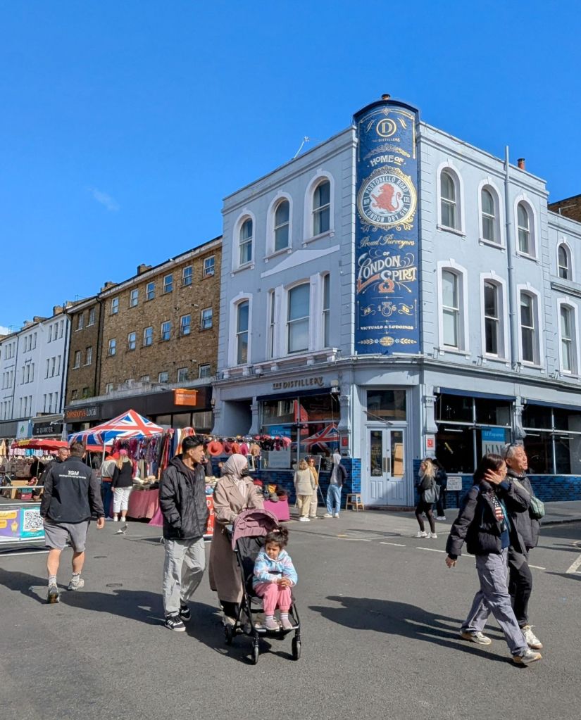 Obwohl wir überhaupt nicht hetzen, liegen wir wirklich hervorragend in der Zeit. Ich schaue mal kurz wohin wir als Nächstes gehen könnten. Weitere spezielle Ziele haben wir uns für heute nämlich nicht herausgesucht und lassen uns lieber inspirieren und durch die Stadt treiben. Okay, ich habe unser nächstes Ziel gefunden, den Old Spitalfields Market.