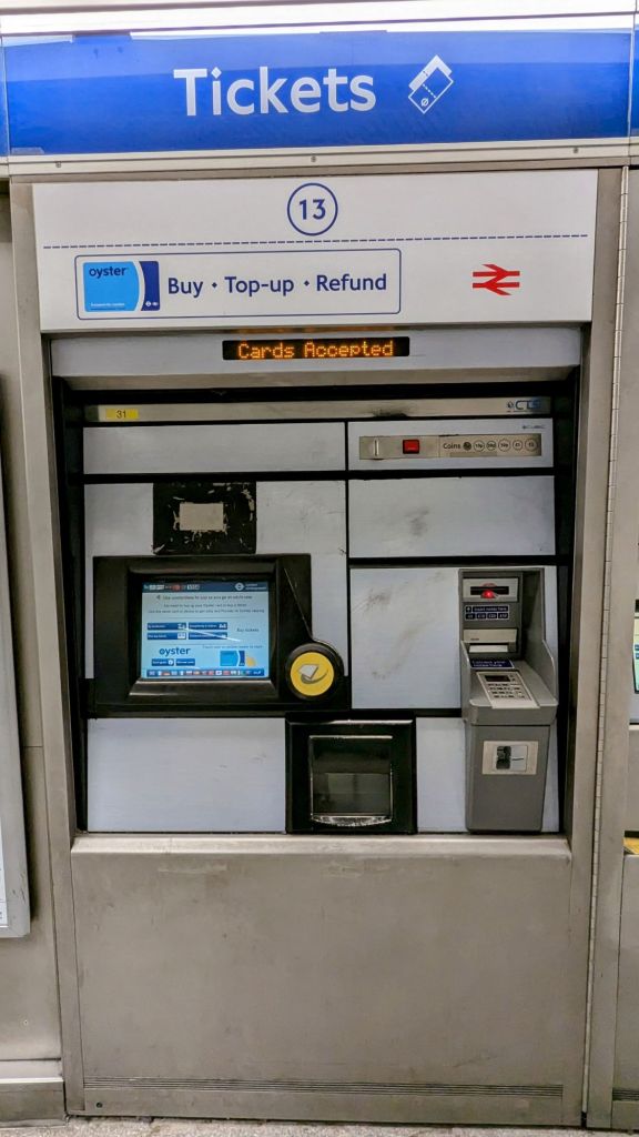 Ich bin wirklich überrascht, wie schnell wir durch die Einreise waren. Jetzt geht es zur U-Bahn. Die Oyster Karten haben wir zum Glück schon. Auch das Aufladen der Karten geht wirklich einfach. Vielleicht liegt es aber auch daran, dass wir schon aufgrund der vielen Auslandserfahrungen wissen, wie das Ganze funktioniert.