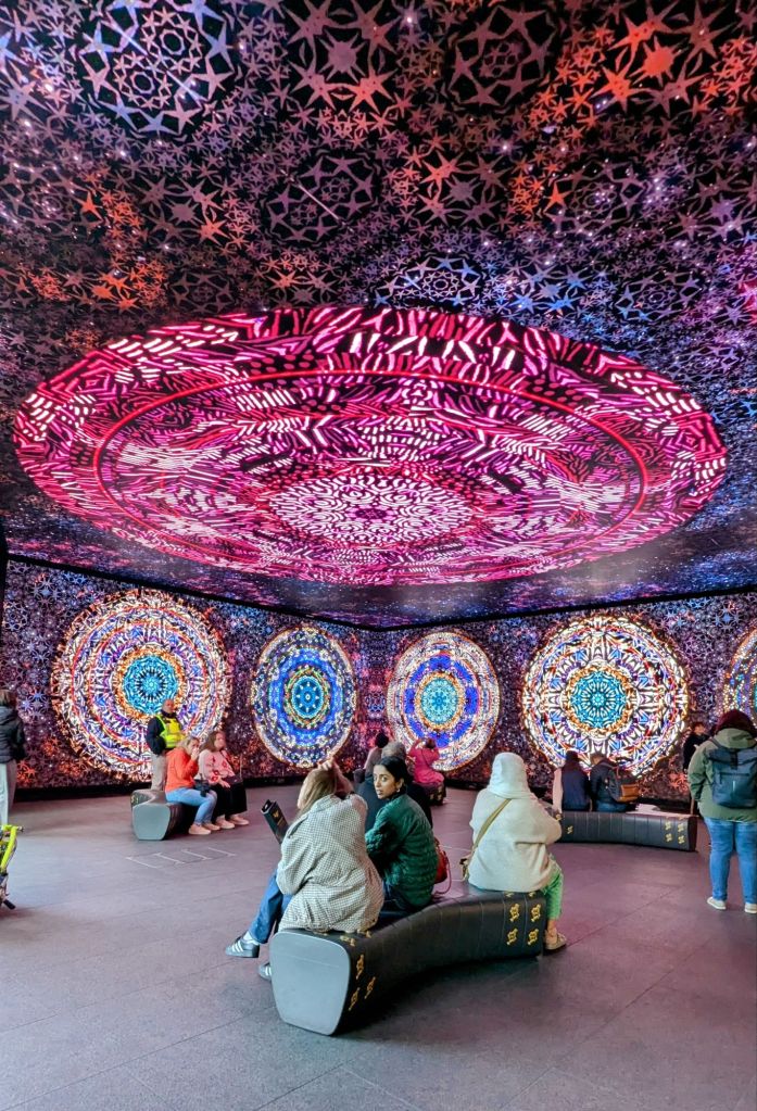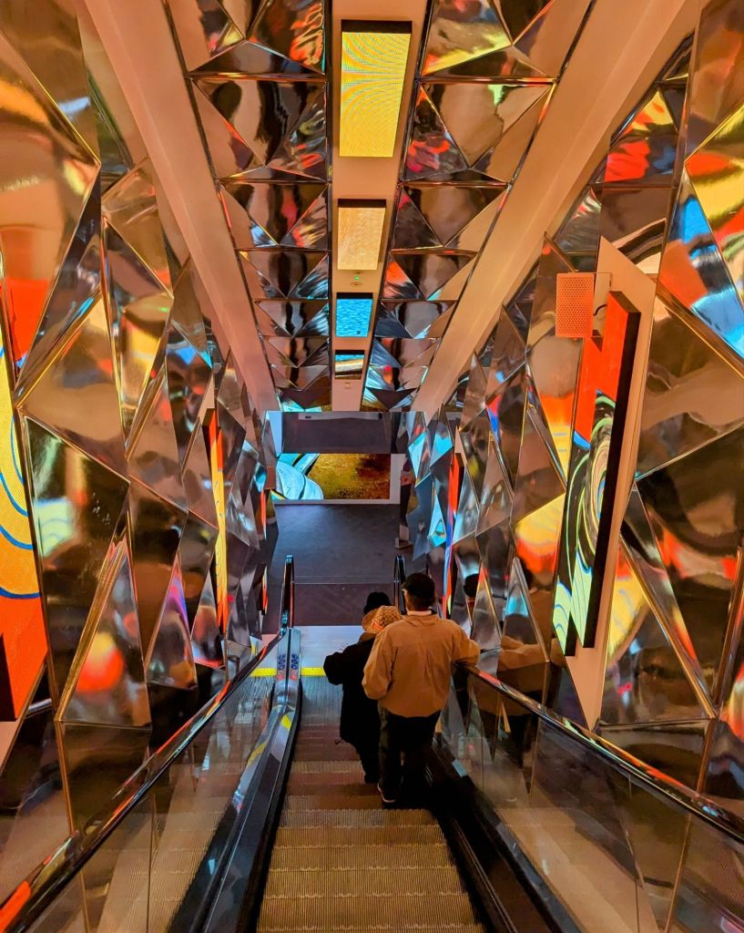 13:15 Uhr: Wir haben beschlossen, etwas eher zum Frameless Immersive Art Experience zu fahren. Der Grund dafür ist, dass ich gesehen habe, dass dieses heute nur bis 15:30 Uhr geöffnet hat. Kurz nachgefragt und kein Problem, wir können schon rein. Es geht hinab in die unterste Ebene. Das sieht super aus und macht Lust auf mehr.