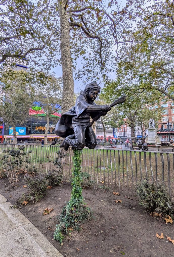 Wir haben noch etwas Zeit und schauen uns die Gegend noch etwas genauer an. Oh, was ist das für ein interessanter Platz. Hier scheint es mehrere Kinos zu geben und wir haben sogar eine Figur von Harry Potter entdeckt. Kein Wunder, das ist der Leicester Square. Hier mal ein paar interessante Fakten zu diesem:
