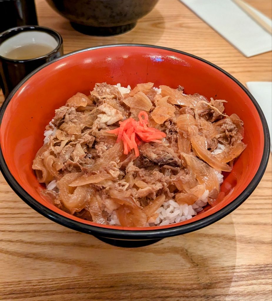 17:00 Uhr: Unser Restaurant, welches wir uns herausgesucht haben, hat endlich geöffnet. Wir haben uns natürlich einen Japaner ausgesucht, bei dem es auch Gyodon gibt. Und allem Anschein nach ist dies sogar ein echter Japaner. Trinkgeld ist hier nicht erwünscht und grünen Tee und Wasser gibt es kostenfrei. Und wow, die Portionen sind richtig lecker.