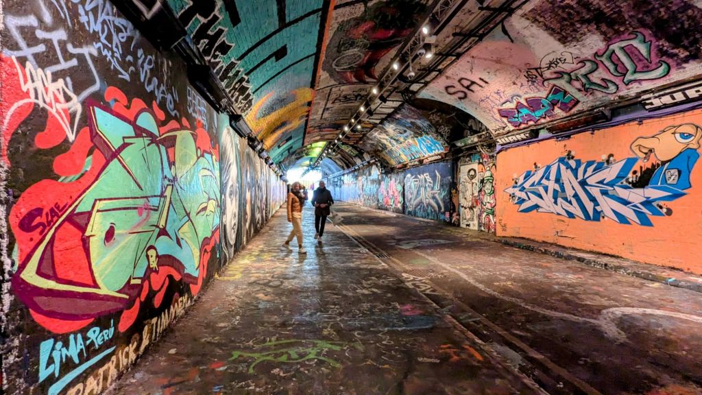 Weiter geht es zu einer Kunstgalerie, The Vaults London, welche unter dem Bahnhof Waterloo entlang führt. Hier kann man Sprayern dabei zusehen, wie sie ihre neuen Werke an die Wand und Decke bringen. Groß ist das Teil allerdings nicht und wir sind schnell durch.