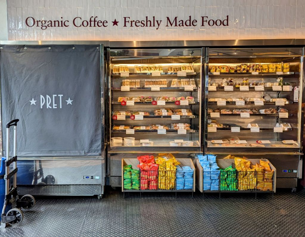 Das Zeitraffer-Video ist relativ gut geworden. Aber eigentlich müsste man zwei bis drei Mal mit dem London Eye fahren, um die perfekte Aussicht zu erhalten. Da wir bis zu unserem nächsten Ziel noch viel Zeit haben, nehmen wir uns diese auch und laufen die Promenade entlang. Kurz noch einen Zwischenstopp im „Pret a Manger“ einer Kette mit leckeren selbstgemachten Essen. Diese Kette hatte ich vor zwei Tagen schon entdeckt und war gleich von ihr begeistert.