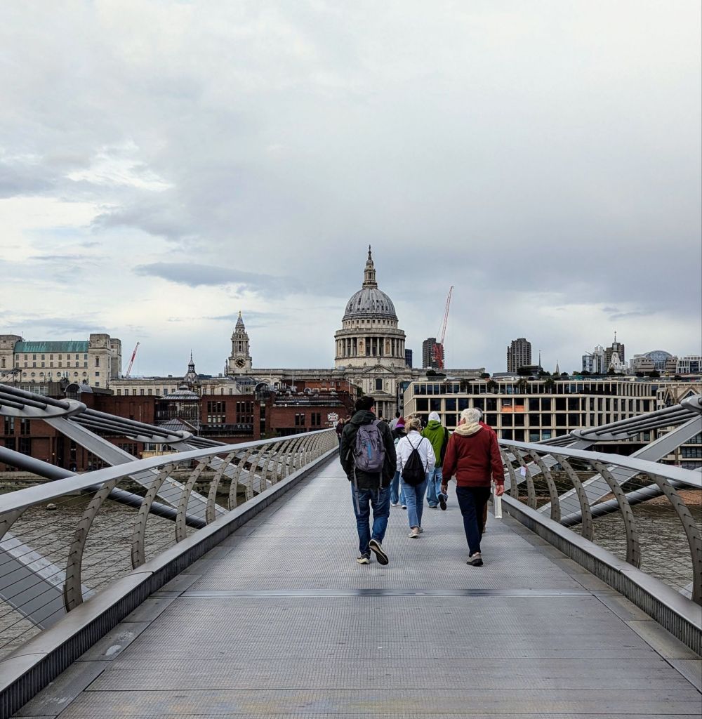 Wir laufen jetzt zur Millennium Bridge, der Brücke, die in einem der Harry Potter Filme zerstört wurde. Im Gegensatz zur Carola-Brücke in Dresden ist sie aber noch ganz. 😂😂