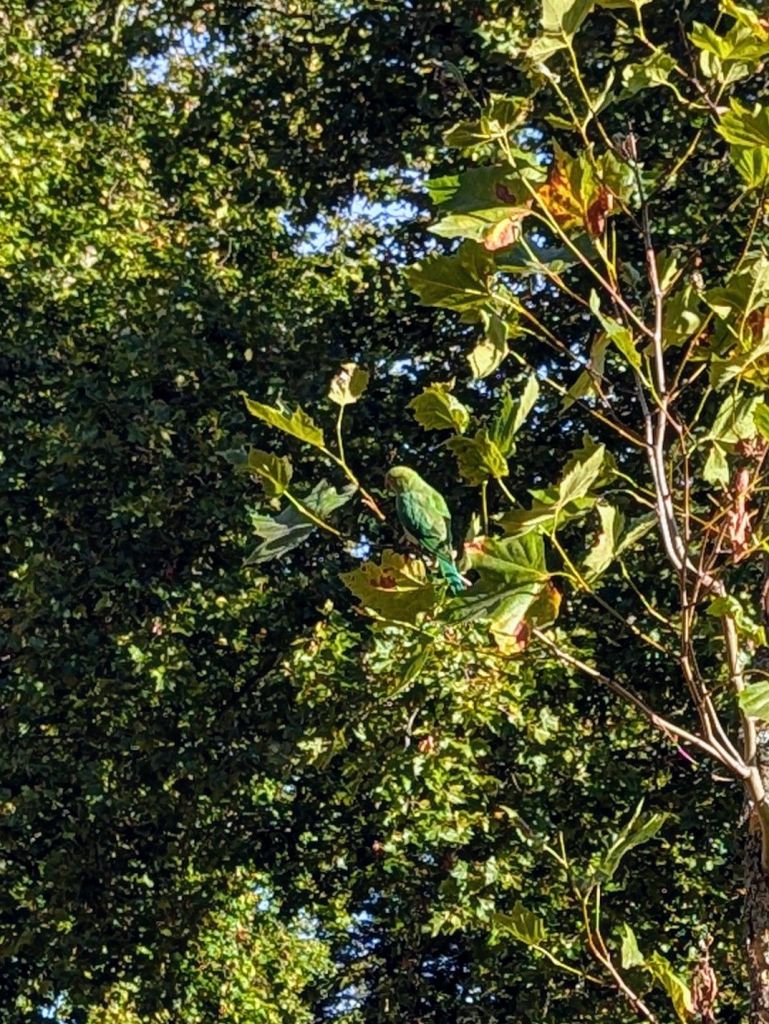 09:00 Uhr: Letzter Tag und wir haben heute eine entspannte Tour vor uns, aber trotzdem mit einigen Highlights. Aber zuerst laufe ich erst einmal zu unserem Treffpunkt, einem kleinen schicken Cafe, welches ich herausgesucht habe. Ich habe bewusst wieder den Weg durch den Hyde Park gewählt. Interessant, hier gibt es frei lebende Papageien.