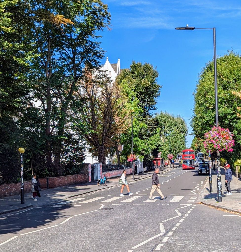 10:30 Uhr: Wir starten zu unserem ersten Highlight für heute, die Abbey Road. Die Zebrastreifen dort sind vor allem Beatles-Fans bekannt. Viel ist nicht los hier, aber einige versuchen trotzdem alleine das bekannte Foto der Beatles nachzustellen. Vor dem Streifen erinnert eine Plakette an das symbolträchtige Plattencover. Das Tonstudio und ein Shop befinden sich auch gleich hier.