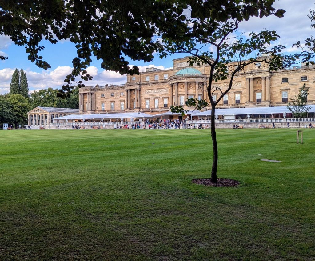 Jetzt noch schnell ein Foto von dem großen Garten schießen, in dem die legendären Gartenpartys der königlichen Familie stattfinden. Laut dem Audioguide sollen bis zu 8.000 Gäste an diesen teilnehmen. Jetzt müssen wir nur noch überlegen, was wir als Nächstes unternehmen, denn dass wir so zeitig durch sind, damit hatte ich nicht gerechnet.