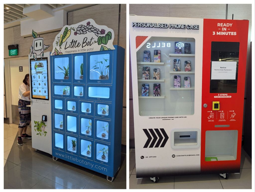 Ich habe gerade diesen witzigen Automaten entdeckt. In einem kann man sich Pflanzen kaufen. Gleich daneben steht ein weiterer Automat, über welchen man sich personalisierte Handyhüllen drucken lassen kann. Mit Automaten haben sie es eben, die Asiaten. Finde ich super.