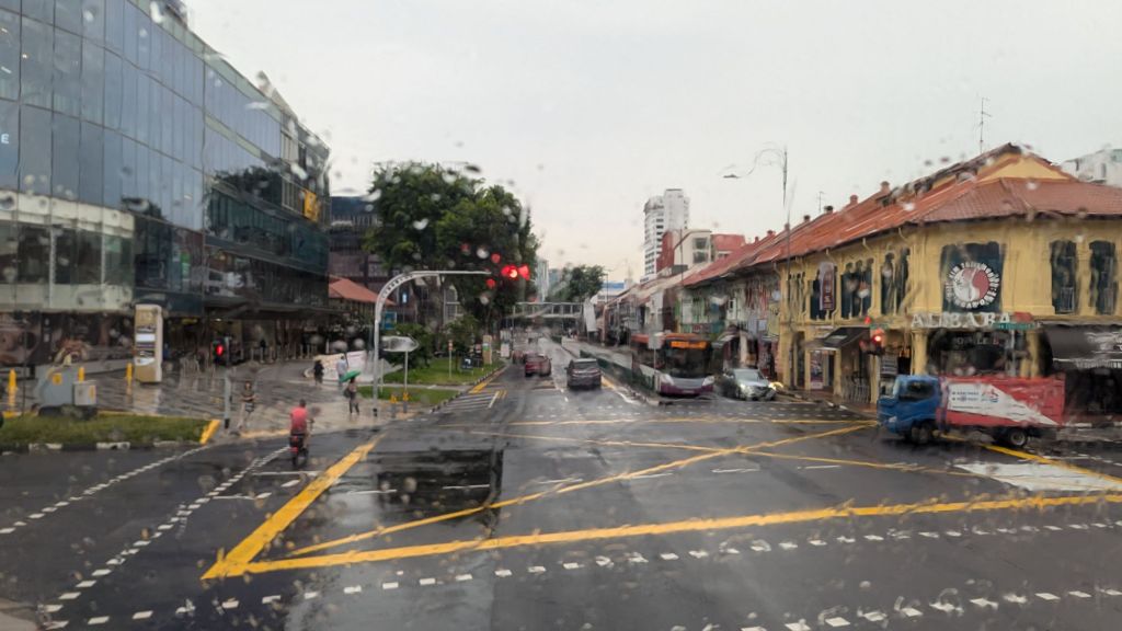 Wir fahren deswegen erst einmal zur Orchard Road. Hier möchte ich in ein Café gehen und die Regenfront aussitzen. Okay, super, schon angekommen. Das Café haben wir auch schnell gefunden. Das stand bei mir ohnehin noch auf der Liste, wenn ich hier in Singapur bin.