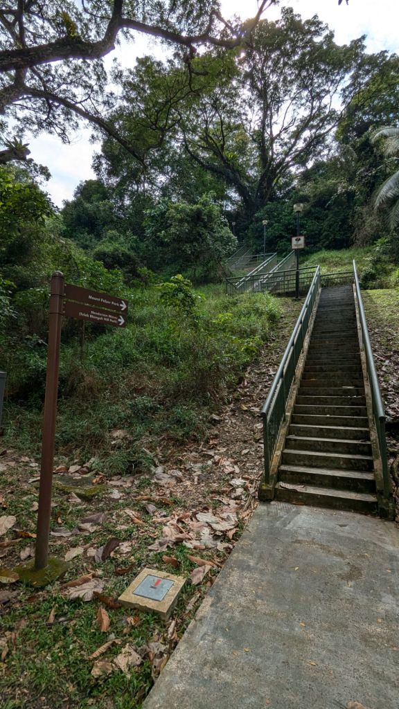 Jetzt kann es endlich zu unserer heutigen kleinen Wandertour losgehen. Ich habe mir dafür die Hügelkette herausgesucht, die sich bei der Insel Sentosa befindet. Hier soll es einen schönen Aussichtspunkt geben. Aber erst einmal müssen wir hier hinauf.