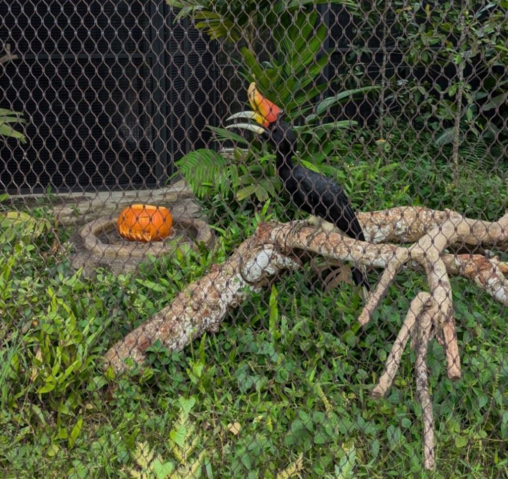 Wir schauen uns jetzt den letzten Bereich, das „Winged Sanctuary“ an. In diesem Bereich werden vom Aussterben bedrohte Tierarten besonders geschützt. Wir reden kurz darüber, was besser ist, da die Gehege doch etwas kleiner wirken.