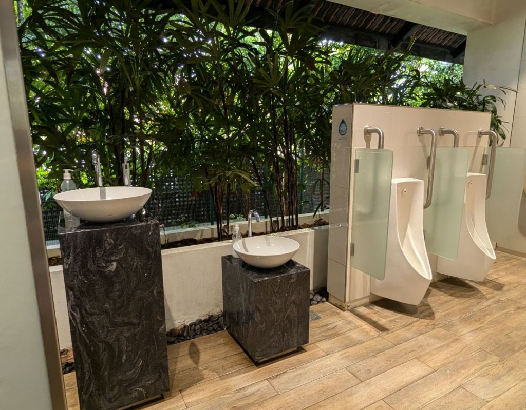 Wow, was ist denn das für eine geile Toilettenanlage, mitten im Grünen und mit Ausblick. Auch so etwas erleben wir hier in Singapur immer mal wieder. Die Toiletten sind eben nicht nur kostenfrei, sondern auch sauber und abwechslungsreich.