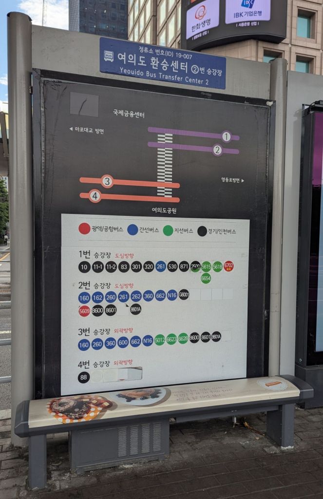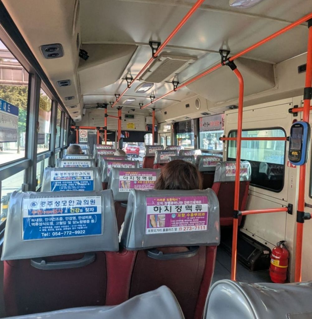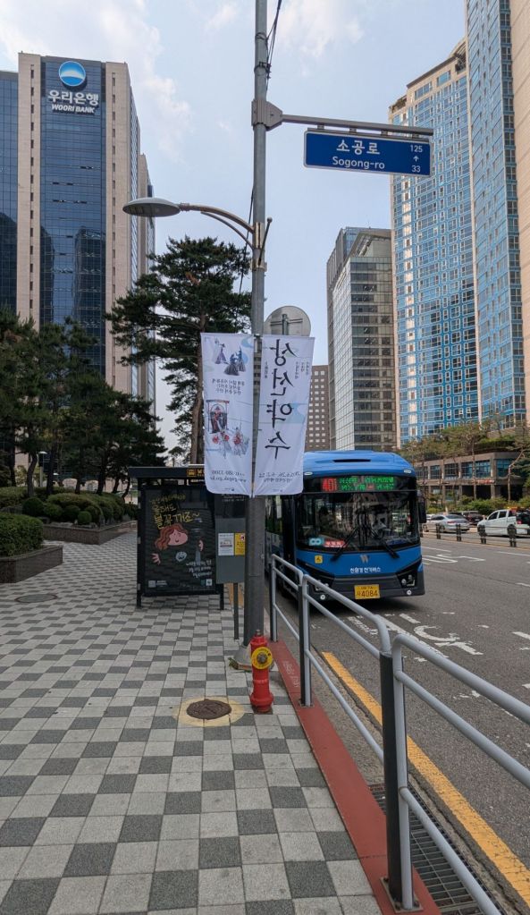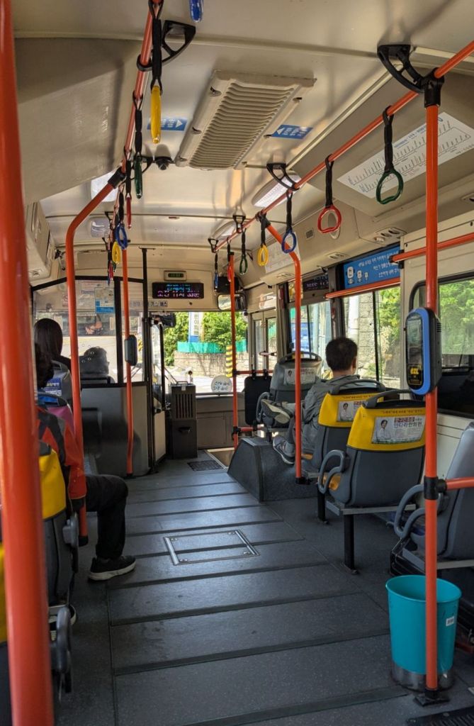 Da kann ich gleich noch etwas zu den Kosten für den Nahverkehr erzählen. Pro Fahrt bezahlt man hier von 700 bis 2500 Won, also umgerechnet zwischen 50 Cent bis 1,80 Euro.