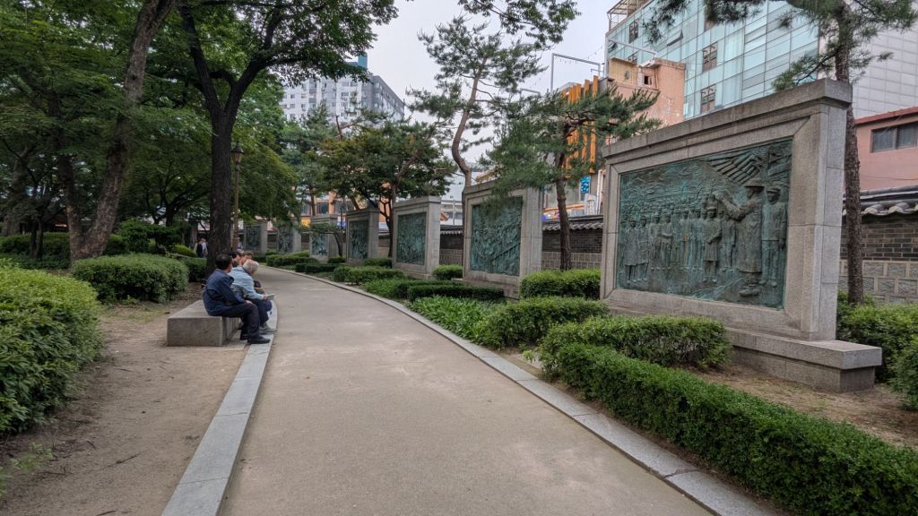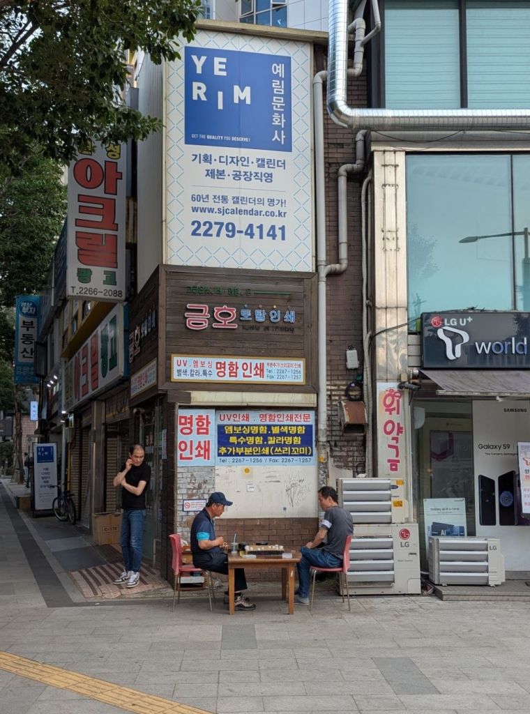 Oh, wir sind schon da. Dies waren nur knapp 15 Minuten zu Fuß. Die meisten Spots in Seoul, die wir uns auf dieser Reise ansehen werden, habe ich im Übrigen bereits 2019 erkundet. Deswegen weiß ich grob, wo wir hin müssen.