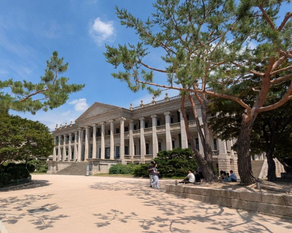 09:30 Uhr: Wir starten zu unserem ersten Ziel. Wir werden uns heute den letzten der fünf Paläste ansehen, den Deoksugung Palace. Dieser ist in der Zeit der koreanischen Republik entstanden, also in der Zeit, als sich Korea gegenüber dem Ausland öffnen musste.
