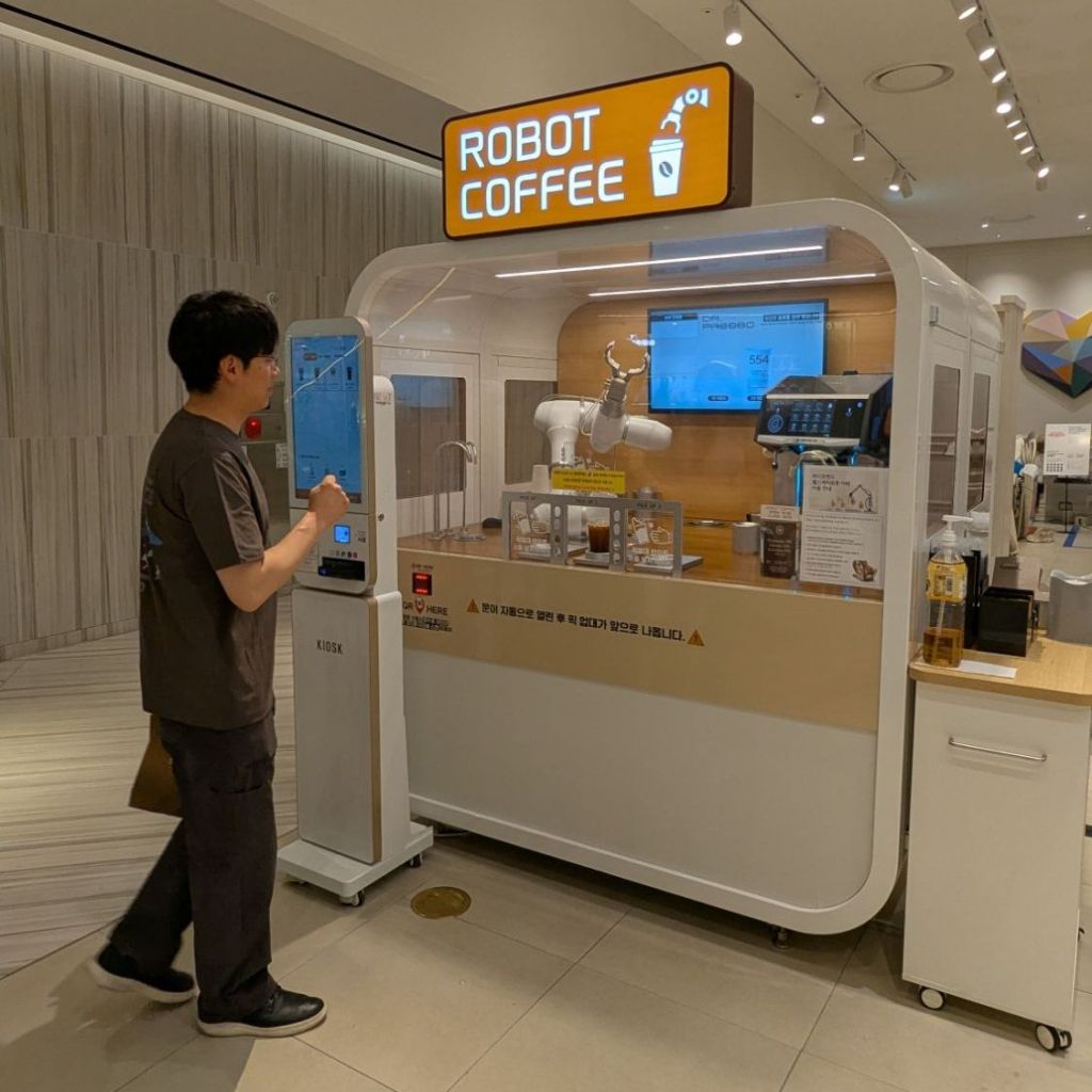 Ich bin hier gerade an zwei kleinen Cafés vorbeigelaufen. Die beiden haben wirklich im Inneren nur sehr wenige Plätze. Aber beide verfügen über einen Bestellautomaten. So etwas spart nicht nur Personal, sondern vor allem Zeit bei allen Beteiligten.
