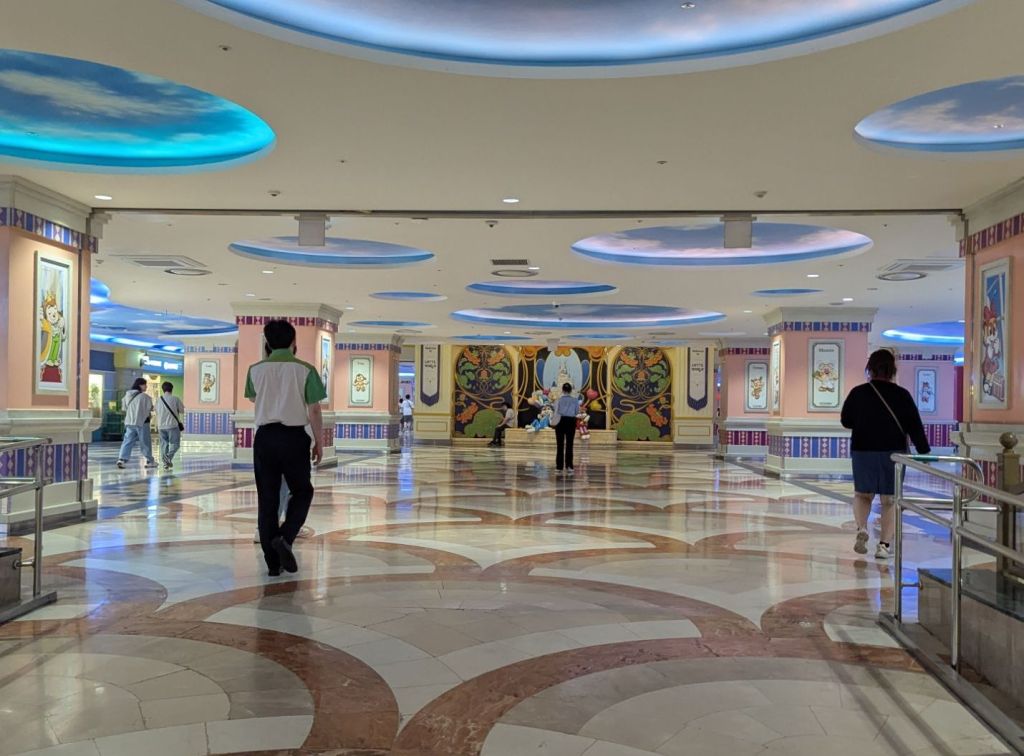 Wir sind gerade in einen Line Store gegangen. Von diesem Anbieter gibt es mehrere Maskottchen und dementsprechend auch einen eigenen Charakter-Store. Aber was ich wieder mal super finde, ist dieser Getränkeständer am Eingang. Hier kann man seine Getränke abstellen und später wieder mitnehmen.