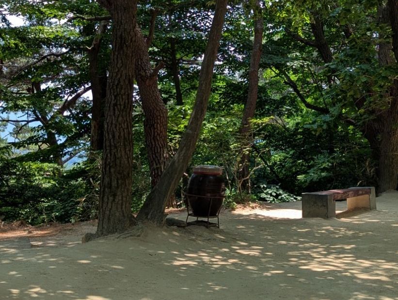 Jetzt aber erst mal durch das kleine Museum. Was mir diesmal besonders auffällt, sind diese Kübel. Ich frage Marcus, wofür sie sind. Ihm fällt Sake ein. In Japan würde das wahrscheinlich sogar stimmen. Aber hier in Korea werden diese Töpfe zum Fermentieren von Nahrungsmitteln genutzt.