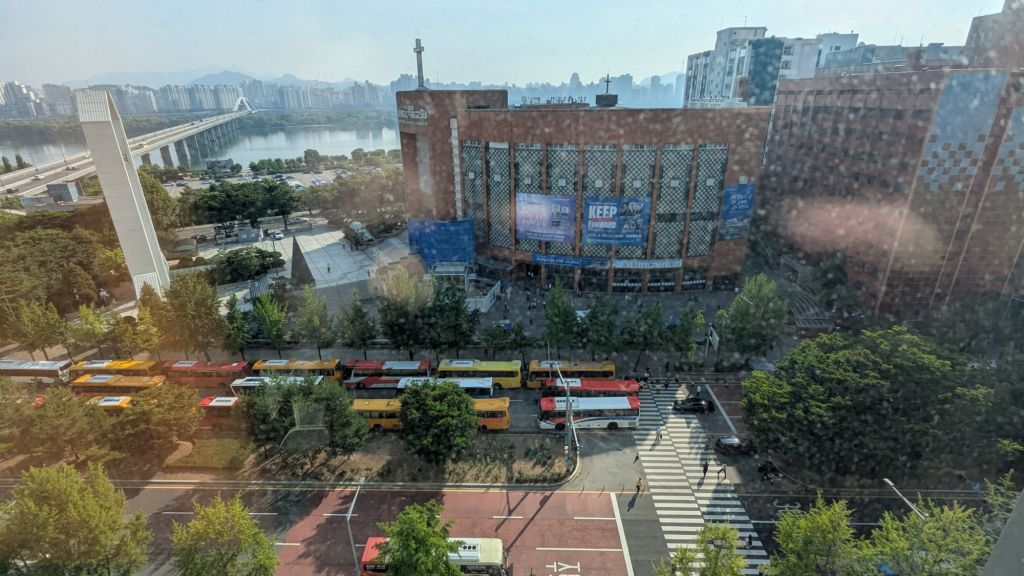 07:30 Uhr: Der heutige Morgen und die letzte Nacht haben viel über die Menschen in Seoul verraten. Ich hatte mein Fenster geöffnet, da die Klimaanlage im Hotel nicht wirklich gut ist.