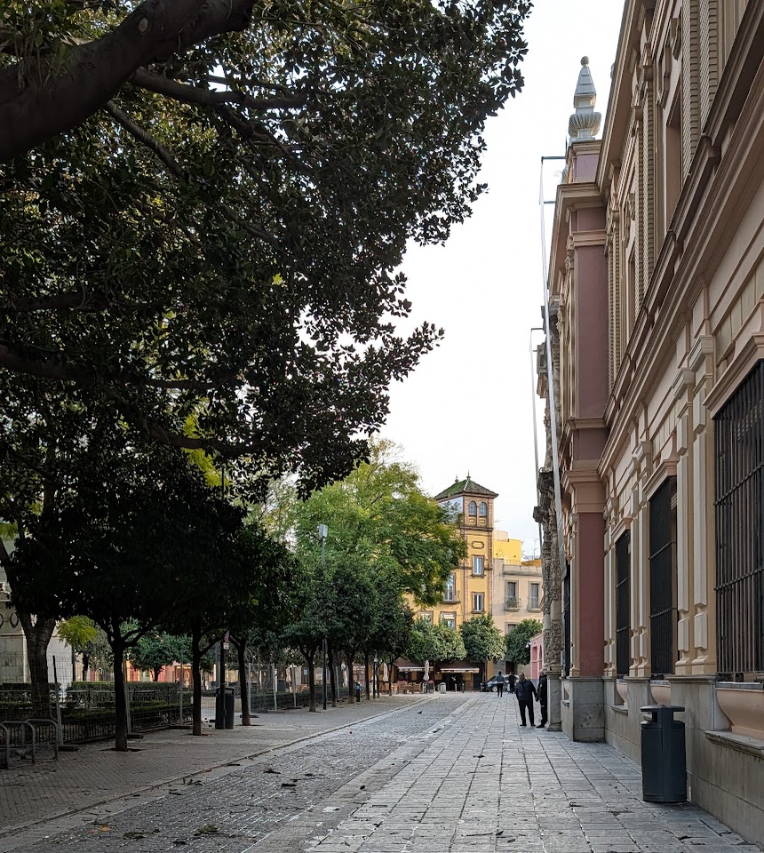 Aktuell laufe ich etwas ziellos hier durch die Altstadt von Sevilla. Es ist ja nicht so, dass es nichts zu sehen gäbe. Aber ich komme auch immer wieder an Ecken heraus, an denen ich bereits gewesen bin. Ich glaube, im Laufe gefühlt im Zickzack.