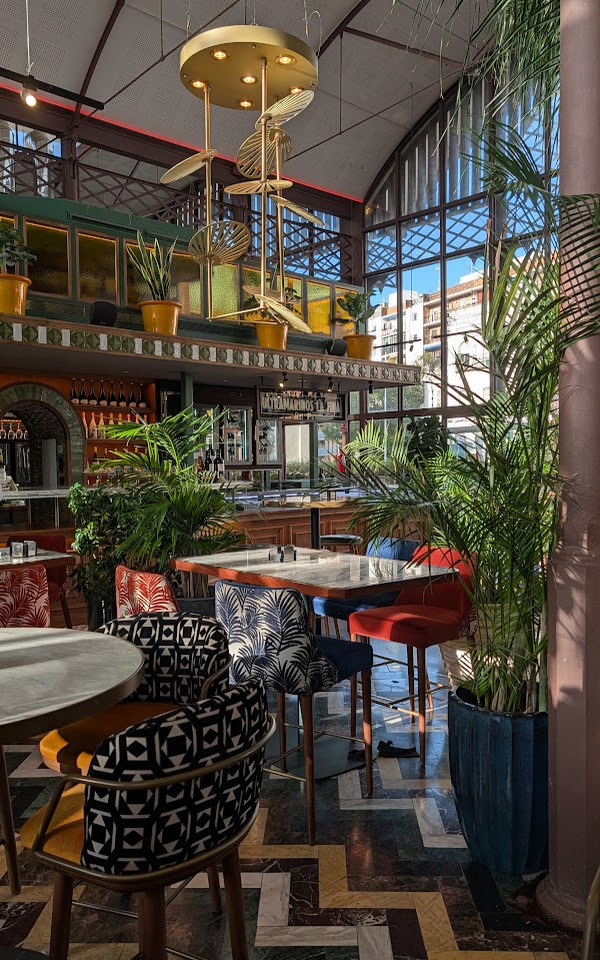 Jetzt aber erst einmal schauen, was es hier zu essen gibt. Okay, sieht sehr schick von innen aus. Wirkt aber eher wie eine offene Foodgastronomie. Ich dachte zuerst, das wäre so etwas wie der Foodmarkt in Madrid. Das Teil hatte aber einen ganz anderen Flair.
