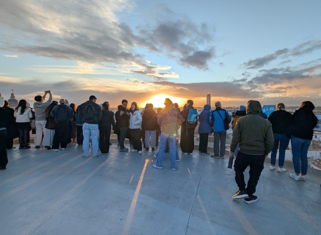 Da Sevilla dieselbe Zeitzone hat wie Deutschland, geht hier die Sonne auch rund eine Stunde später erst unter. Das bedeutet, ich werde wahrscheinlich hier oben bleiben, solange bis die Sonne untergegangen ist. Ich muss auch gerade schmunzeln, wie viele hier versuchen, vom Sonnenuntergang ein Foto zu schießen.