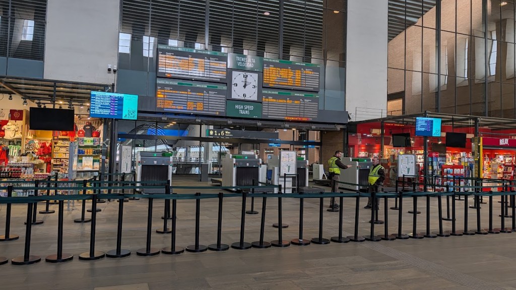 Aber ich sehe schon, auch hier gibt es eine Sicherheitskontrolle. Durch solch eine mussten wir auch in Madrid. Ich bin ja ein großer Freund von Kontrollen, wenn man in den inneren Bereich eines Bahnhofes will. In vielen Ländern ist dies bereits Standard.