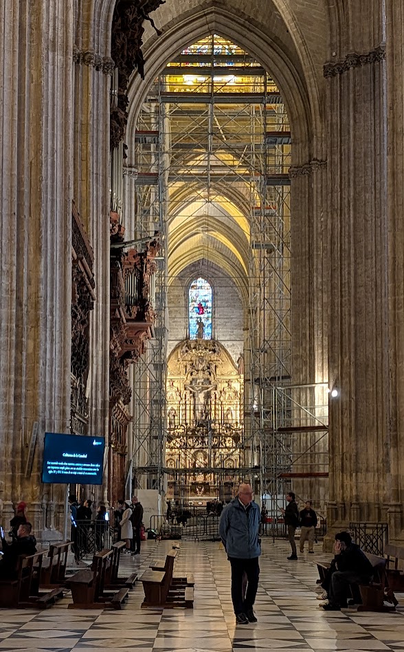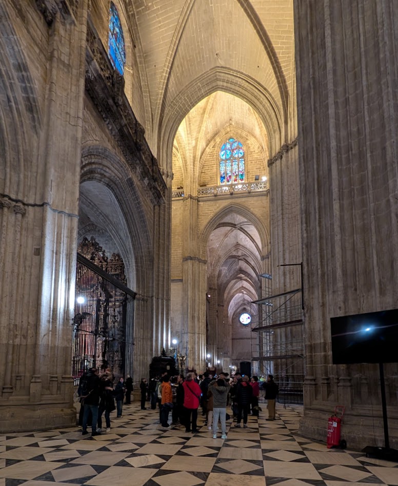Allgemein habe ich aber gerade den Eindruck, dass weniger los ist. Die Kathedrale fühlt sich eher leer an. Man darf aber auch nicht vergessen, dass es wirklich die größte ihrer Art ist. Als im Jahr 1401 die Planung damit begann, sollen die damaligen Domherren gesagt haben: „Lasst uns eine Kirche so schön und so groß bauen, dass man uns für verrückt hält.“
