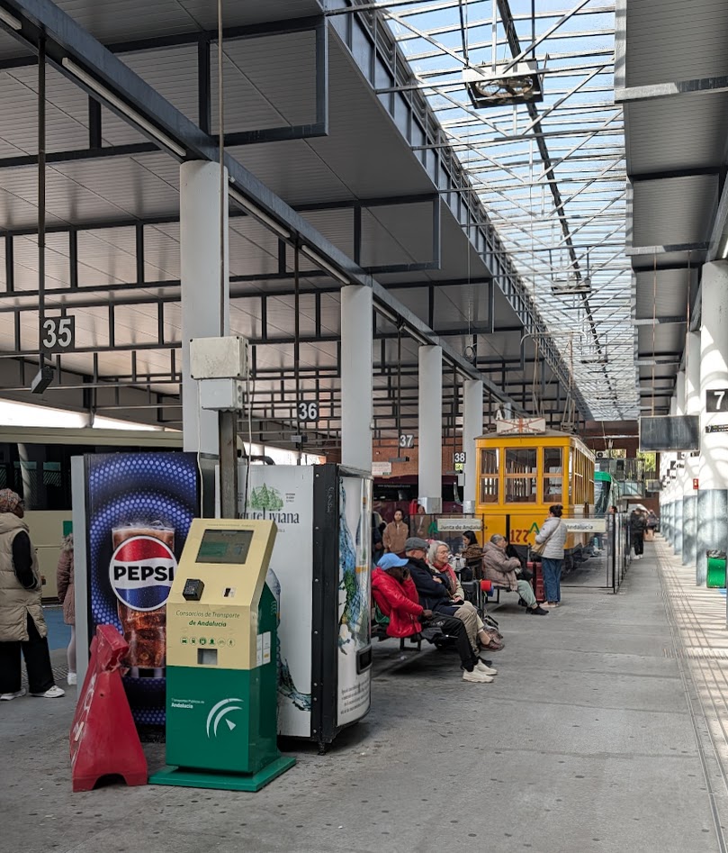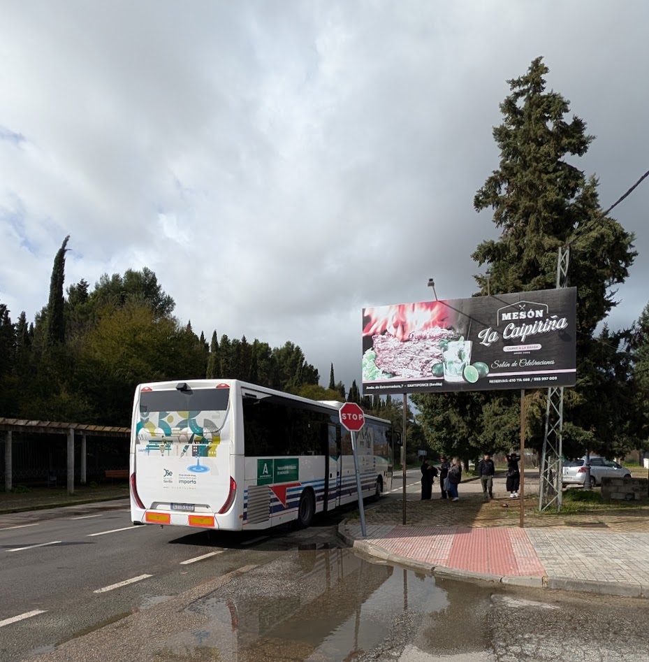 Man, das war gerade wirklich nett. Ich wollte zurück nach Sevilla fahren und stand dafür auf der Straßenseite, wo mein Bus ankommen sollte. Auf der anderen Straßenseite kam aber ein anderer Bus an, der ebenfalls nach Sevilla fuhr. Der Busfahrer hat kurz mit Handzeichen gefragt, ob ich dorthin will, und mich dann zu ihm herübergewinkt. Sehr aufmerksam.