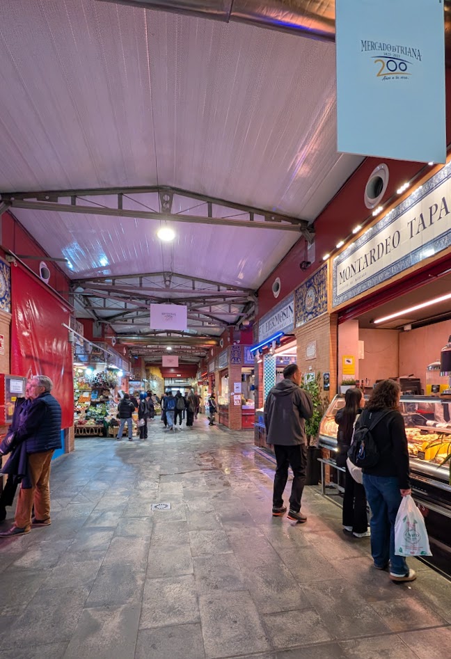 Ich verstehe es echt nicht. Auch diese Markthalle, der Mercado de Triana, wirkt trist. Hier gibt es zwar ein paar mehr Stände, die geöffnet haben, aber ansonsten ist hier tote Hose. Was ist hier los in Sevilla? Vom spanischen Temperament ist hier nichts zu spüren.